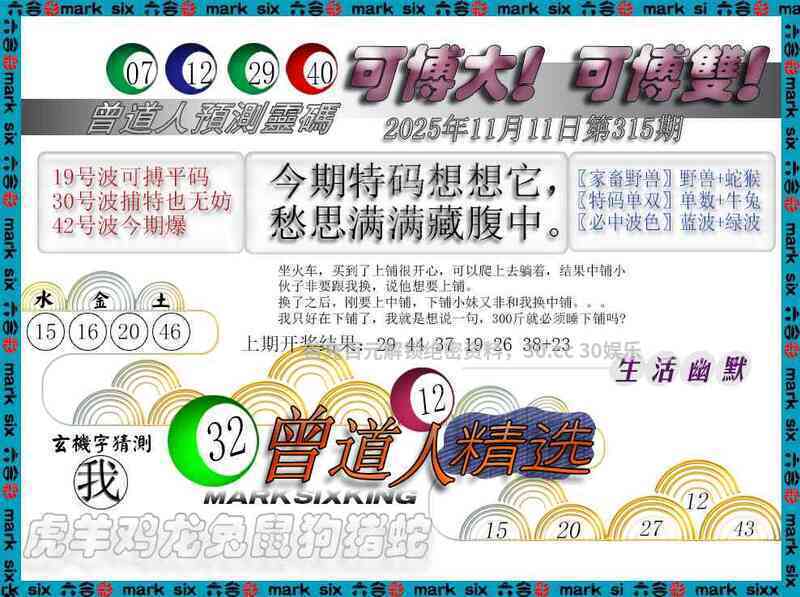 315期:男女二肖【男肖+羊兔】开:虎04准