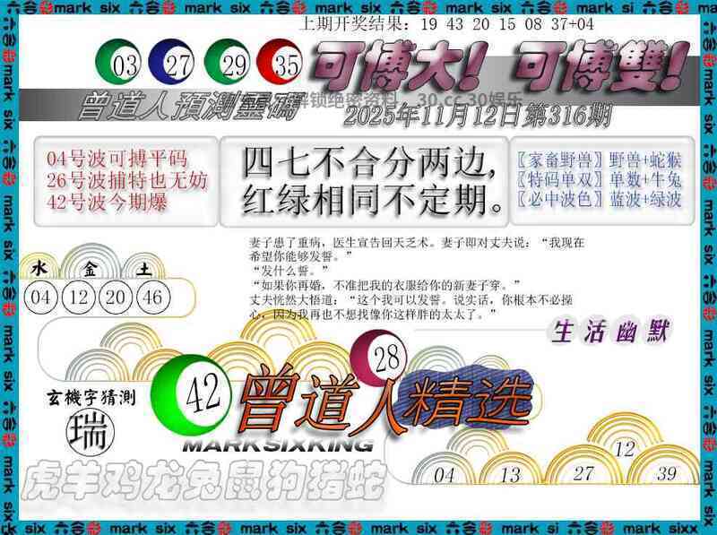 316期:男女二肖【女肖+牛鼠】开:马24错
